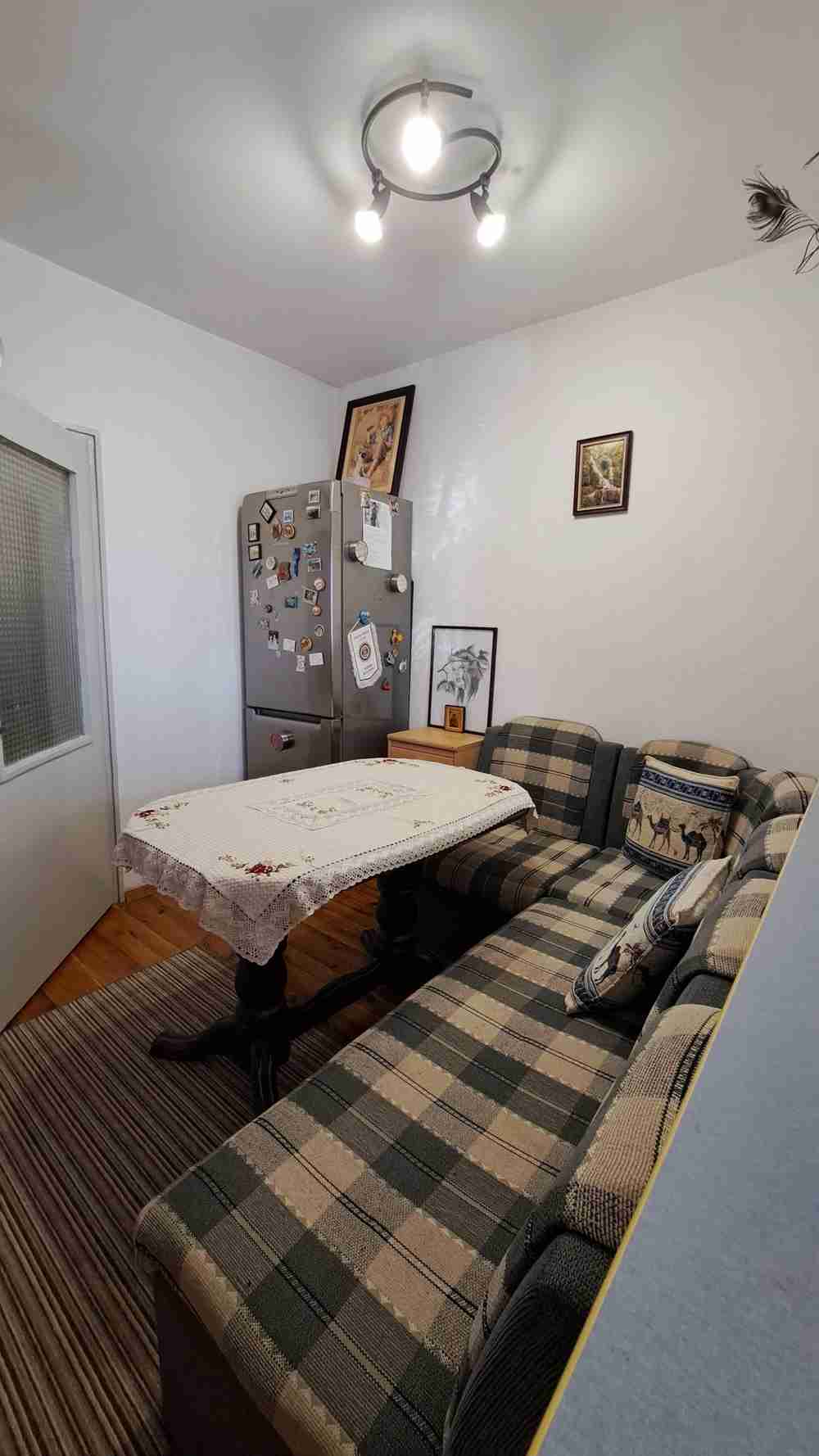 • Състоящ се от: дневен тракт - кухня, трапезария и хол в едно, спалня, стая и обща баня с тоалетна. Има хубави тераси на стаите.