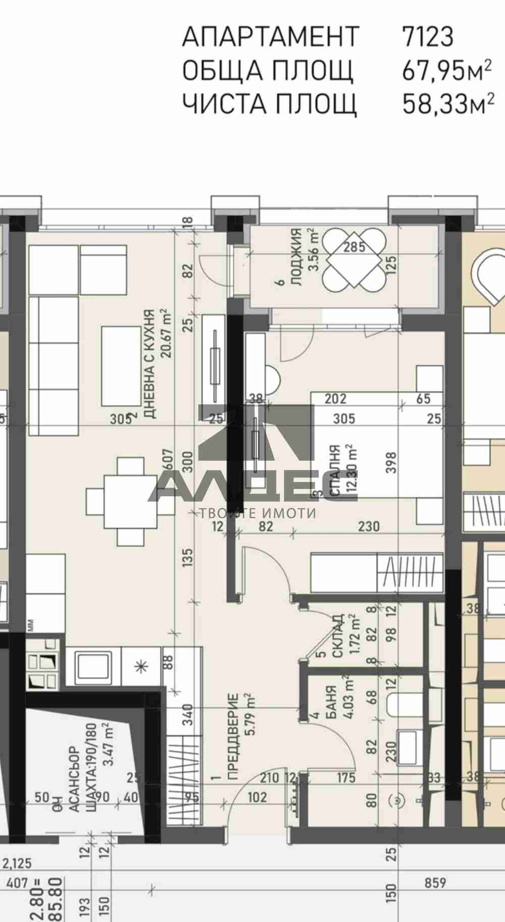 Описание: ПАНОРАМЕН, ФУНКЦИОНАЛЕН и СЛЪНЧЕВ апартамент в модерна нова сграда, със съвременна архитектура и високо качество на строителството! В затворен комплекс с контролиран достъп и озеленено междублоково пространство. На отлично място – в близост до Кауфланд, спирка на тролеи; трамвай; метро; Сградата е с приет Акт 14; срок на завършване – началото на 2027г. Луксозни общи части; асансьор; топла връзка до подземните гаражи; вентилируема фасада; Апартаментът е разположен на етаж 11 над партер от 18; РАЗПРЕДЕЛЕНИЕ: 67,95 кв.м обща площ; 58,33 кв.м застроена площ; просторен хол с трапезария и бокс; самостоятелна спалня; баня с тоалетна; килер; един балкон - пред стаята, с излаз и от хола; ОТОПЛЕНИЕ: ТЕЦ; ПОДОВИ НАСТИЛКИ: предава се на замазка и шпакловка; монтирана входна врата; PVC дограма; ИЗЛОЖЕНИЕ: СИ; Възможност за закупуване на подземен гараж; ЗА ПОВЕЧЕ ПОДРОБНОСТИ И ОГЛЕДИ: 0899 931 948, оферта 12019с | |