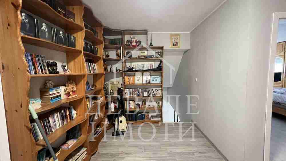 2 ет -Три спални, едната е огромна със собствена гардеробна и тераса, огромна баня и тоалетна разделена на суха и мокра част .коридор с вграден гардероб и масивна библиотека