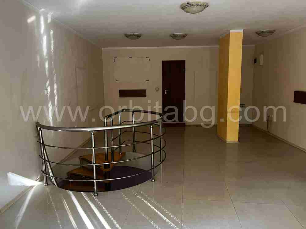Описание: Агенция ОРБИТА предлага за продажба помещение със статут на офис с чиста площ от 84 кв.м., разпределена на две нива свързани с вътрешно стълбище, от които: партерно ниво на кота 0.00 м. около 50 кв.м., включващо офисно помещение, санитарен възел и вътрешно стълбище; сутеренно ниво: на кота -2.60м. около 30 кв.м., включващо складово помещение и вътрешно стълбище. Изложение запад, помещението има голямо лице на улица Ловен парк.