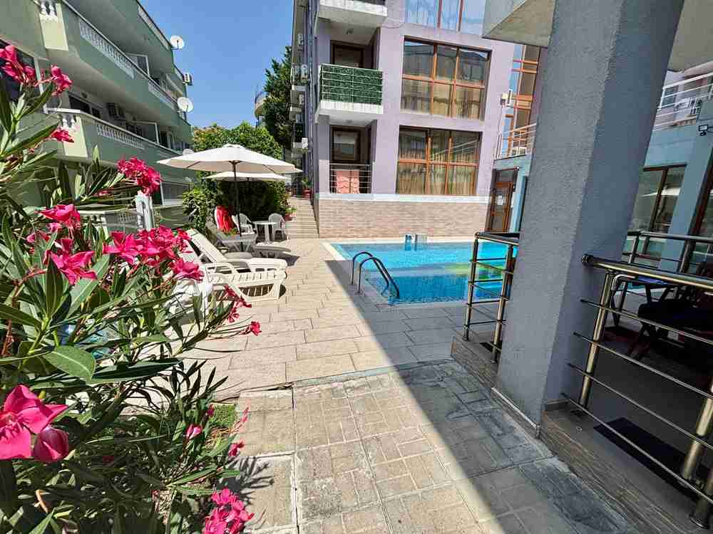 ✅ Този апартамент с частична гледка към морето се намира в Свети Влас, в комплекс "Нови Изгрев". Намира се на 4-ти етаж и е с площ от 104 м². Обзаведен е и оборудван. Всички стаи са с климатик, две бани (едната е преустроена в сервизно помещение), а терасите предлагат гледка към планината и морето. Този затворен комплекс разполага с кодирани ключалки, добре поддържан двор, басейн със зона за релакс и билярд. Местоположението е удобно, а районът се отличава с добре развита инфраструктура, което го прави идеален за големи семейства с деца. Разстоянието до морския плаж е само 250 м. Таксата за поддръжка е 800 €/годишно, наличен е Акт 16.