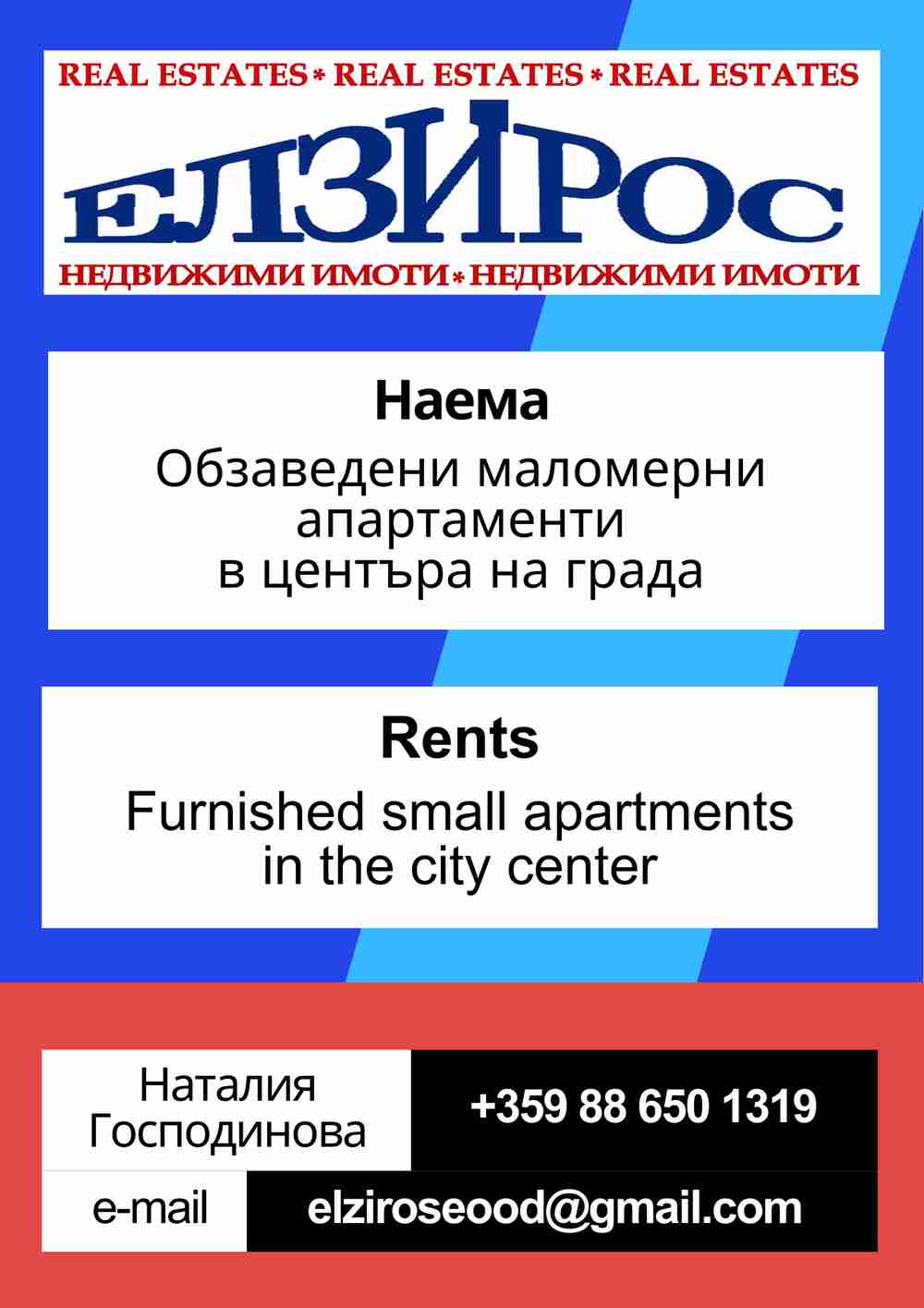 | Para contactar: | Empresa: ЕЛЗИРОС ЕOOД Pais: Bulgaria Localidad: гр.Кюстендил Dirección: ул. Демокрация №37, ет. 1, офис 2 Teléfonos de contacto: 0886501319 E-mail: elziroseood@gmail.com |